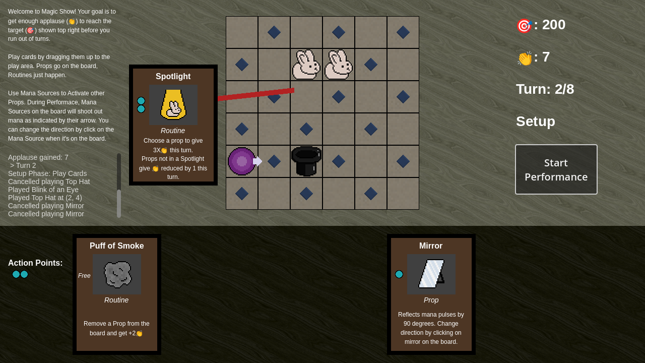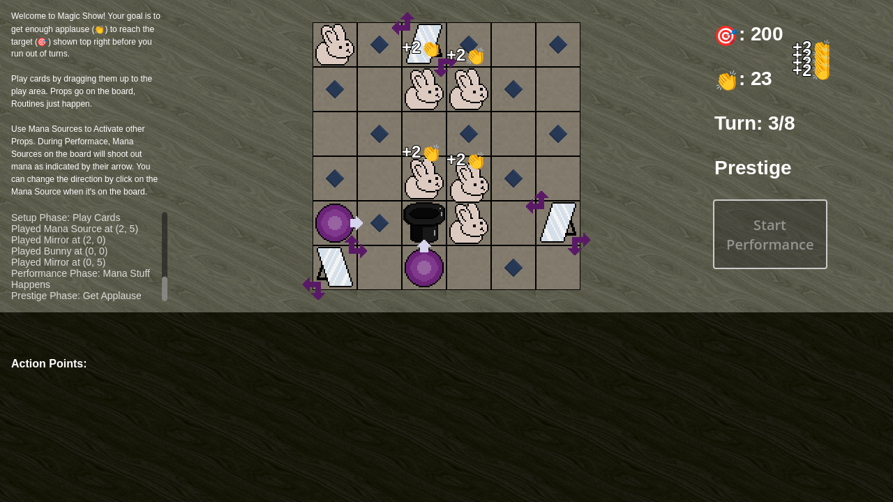 Impress your audience with props, routines and a touch of magic. Gather enough applause before the show ends!
